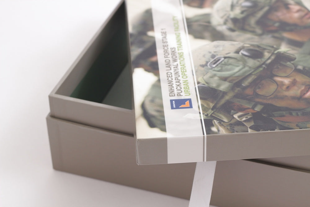 Shoe box style tender presentation to The Australian Army. Digital inkjet print