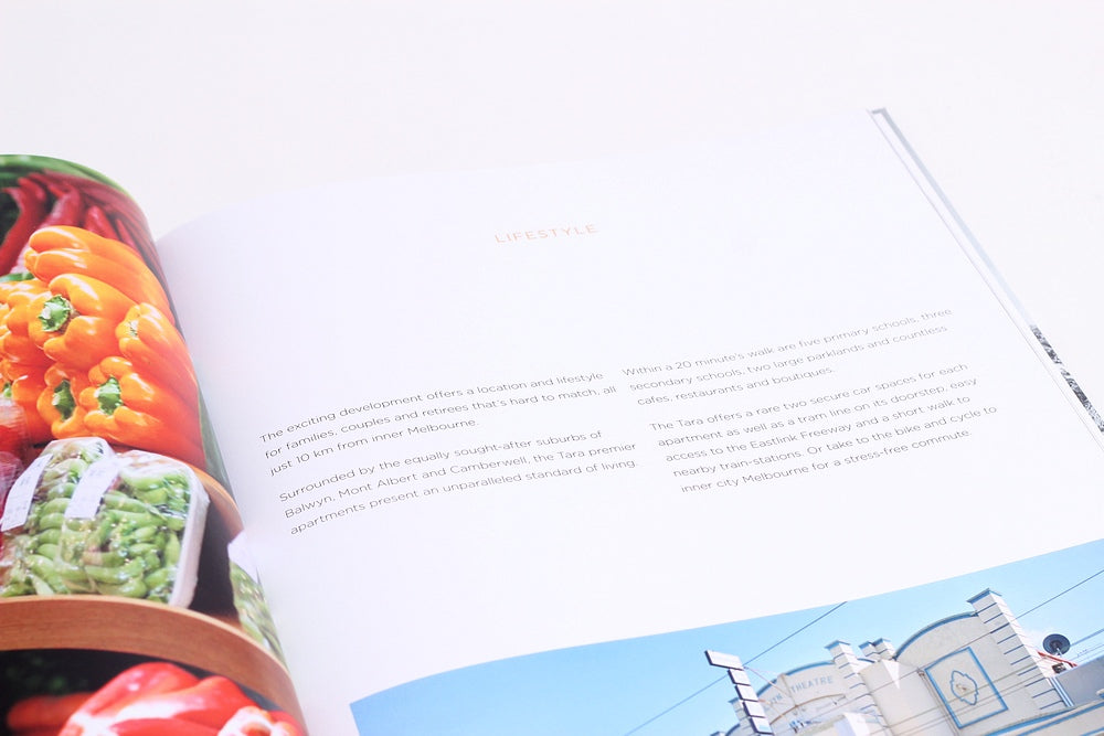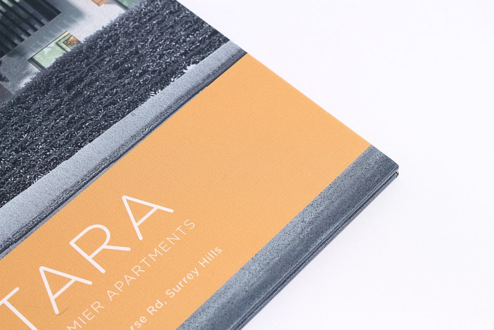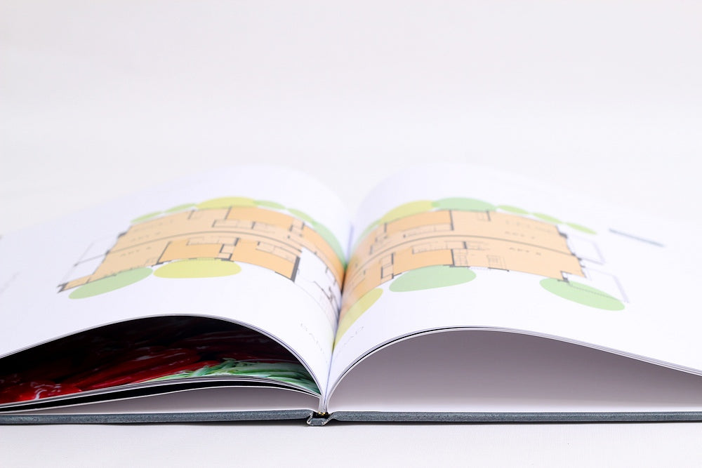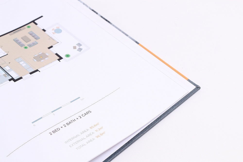These books portraying a townhouse development were printed in house on Sovereign Offset with cover graphics printed on white buckram. A3 portrait